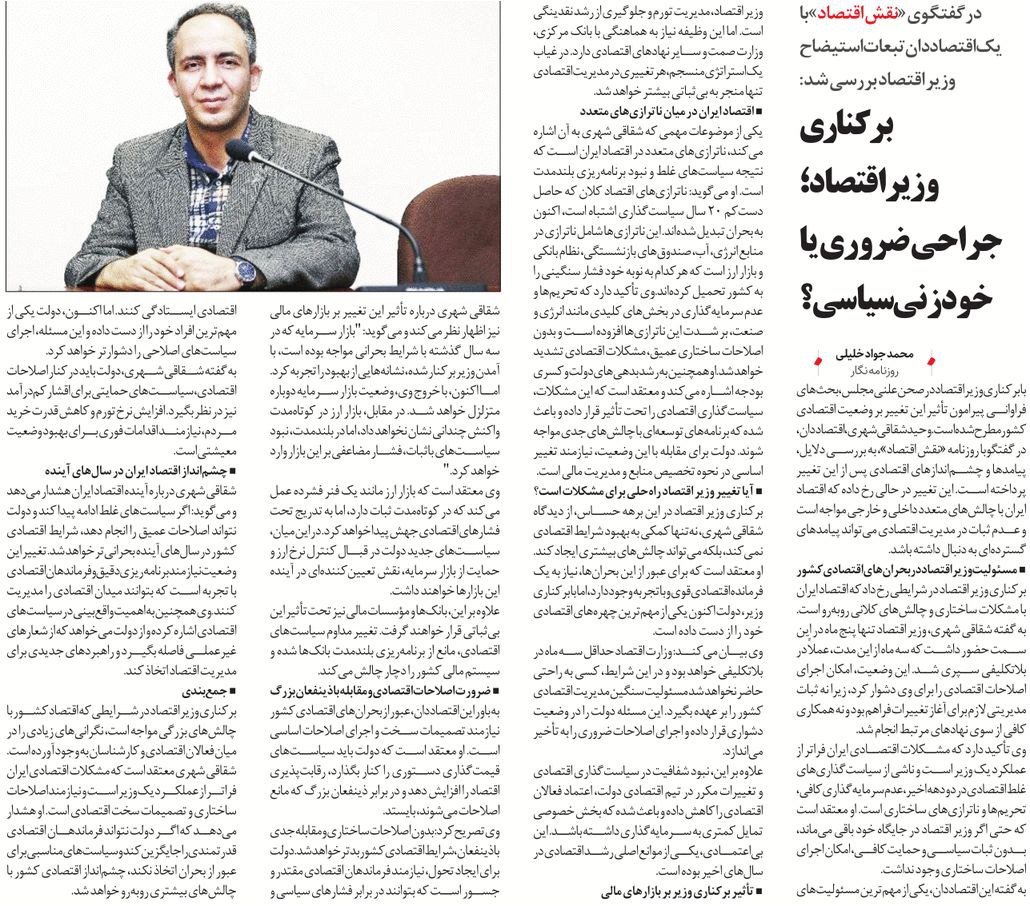 روزنامهٔ نقش اقتصاد: برکناری وزیر اقتصاد، جراحی ضروری یا خودزنی سیاسی؟