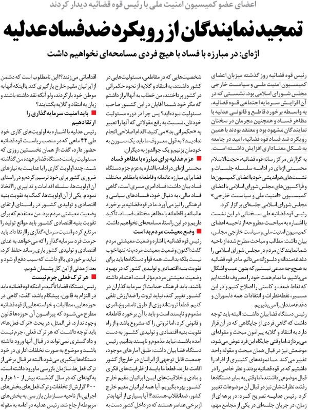 روزنامهٔ جوان: تمجید نمایندگان از رویکرد ضد فساد عدلیه