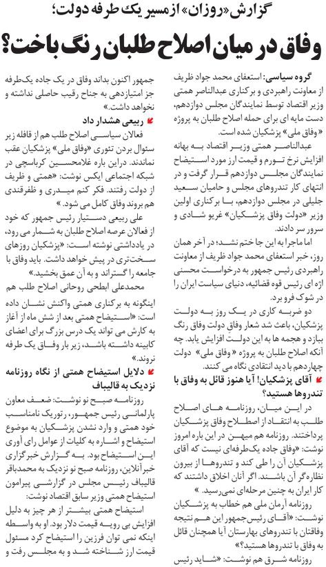 روزنامهٔ روزان: وفاق در میان اصلاح‌طلبان رنگ باخت؟