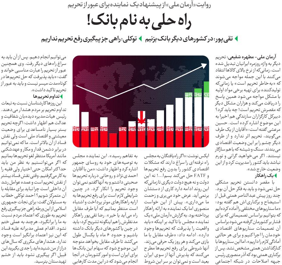 روزنامهٔ آرمان ملی: راه‌حلی به نام بانک!