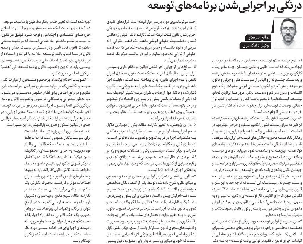 روزنامه سازندگی: درنگی بر اجرایی شدن برنامههای توسعه