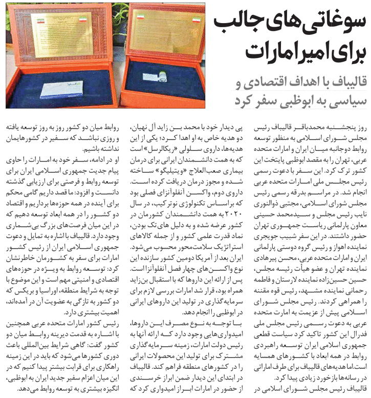 روزنامه هفت صبح: سوغاتیهای جالب برای امیر امارات
