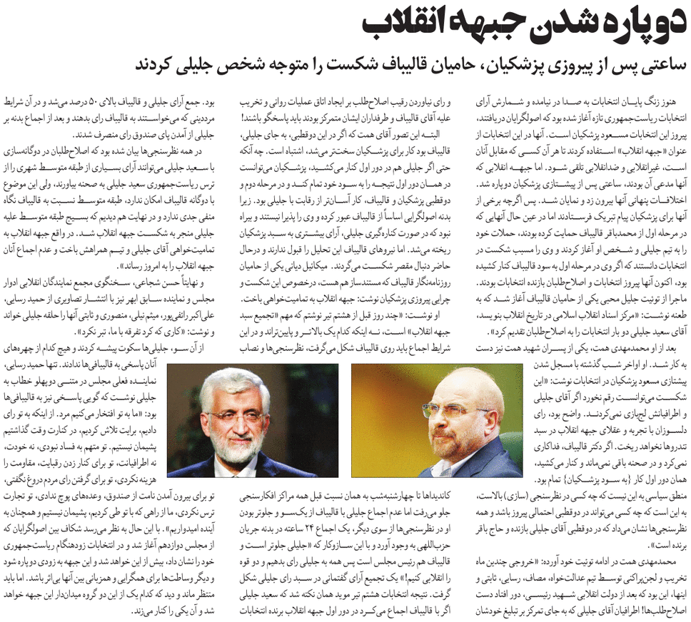 روزنامهٔ صدا: دولت اصلاحی مجلس انقلابی تقابل یا همکاری