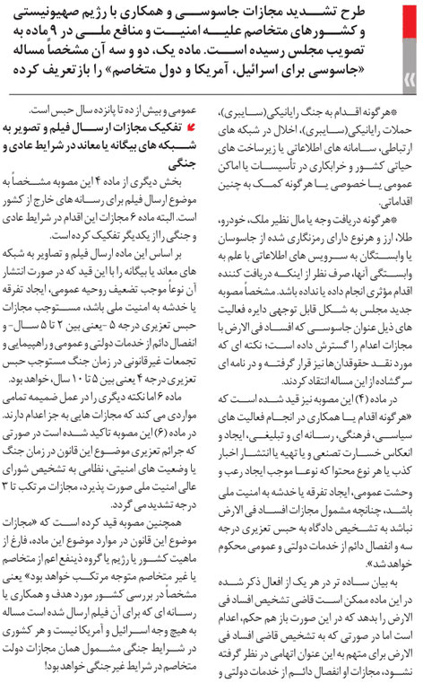 روزنامهٔ روزان: تشدید مجازات جاسوسان و همکاریکنندگان با رژیم صهیونیستی