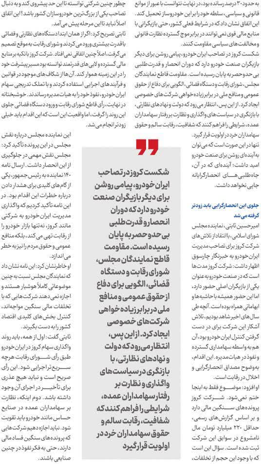 روزنامهٔ چارسوق: حکم نهادهای نظارتی برای خروج کروز از ایران‌خودرو