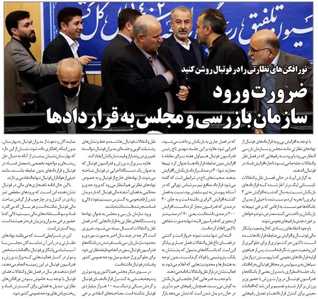 روزنامهٔ نوآوران: ضرورت ورود سازمان بازرسی و مجلس به قراردادها
