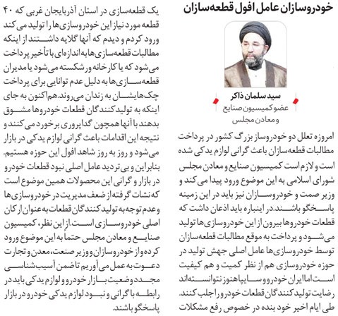 روزنامهٔ نقش اقتصاد: خودروسازان عامل افول قطعهسازان