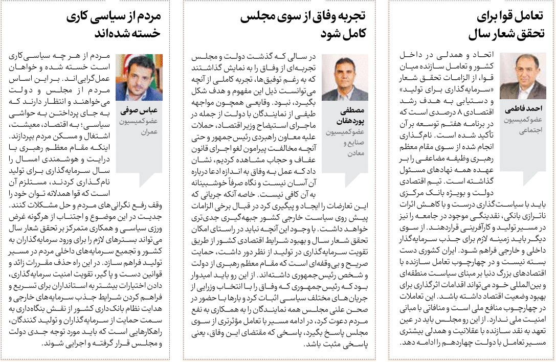 روزنامهٔ روزان: برخی از نمایندگان مجلس با «اهداف سیاسی»، سیاست‌های «اقتصادی» دولت را به چالش می‌کشند