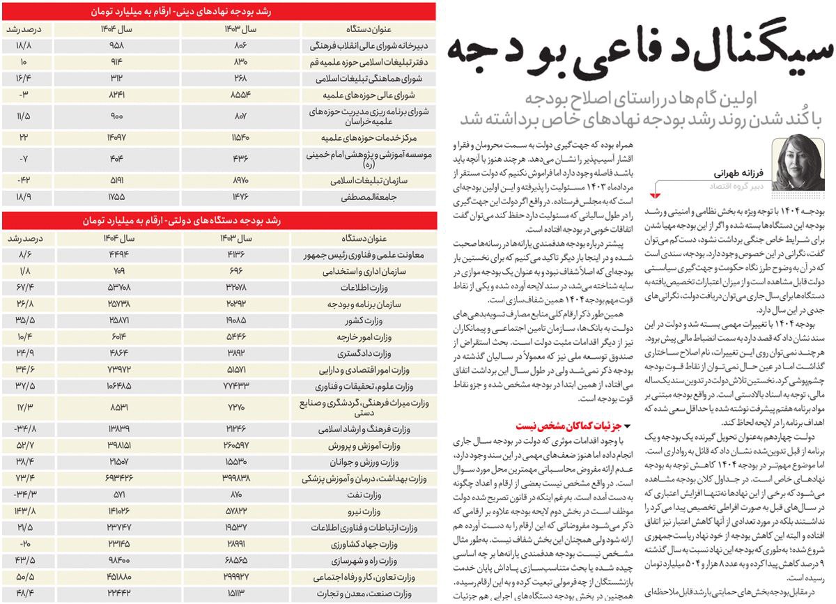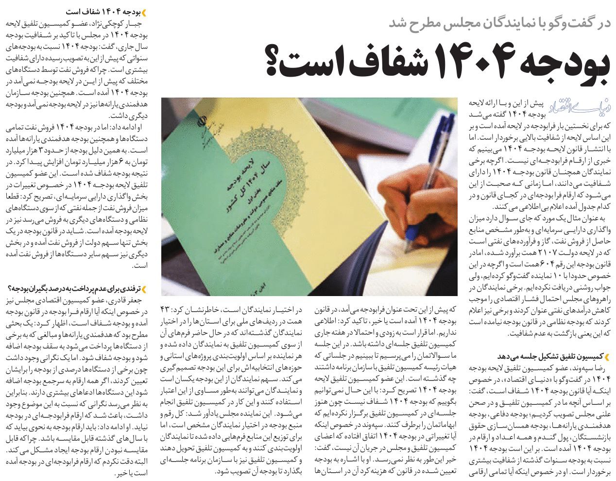 روزنامهٔ دنیای اقتصاد: بودجه ۱۴۰۴ شفاف است؟