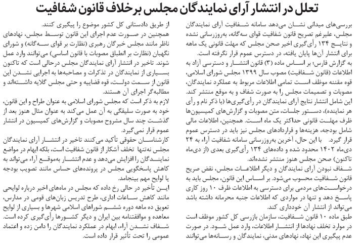 روزنامهٔ سیاست روز: تعلل در انتشار آرای نمایندگان مجلس برخلاف قانون شفافیت