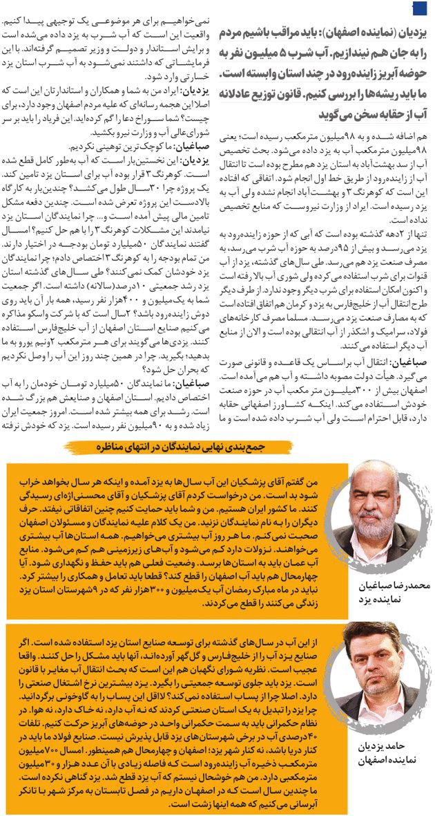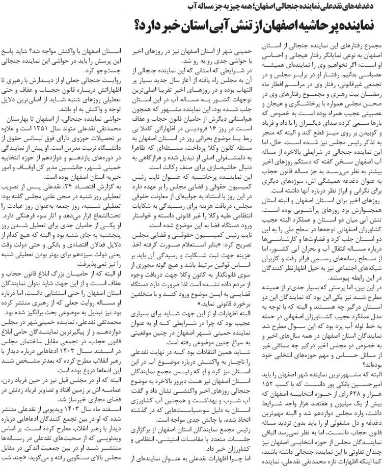 روزنامهٔ راه مردم: نماینده پرحاشیه اصفهان از تنش آبی استان خبر دارد؟