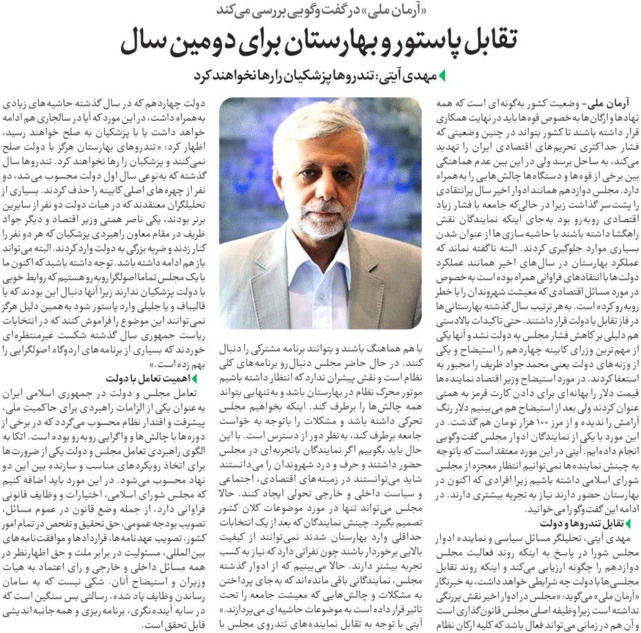 روزنامهٔ آرمان ملی: تقابل پاستور و بهارستان برای دومین سال