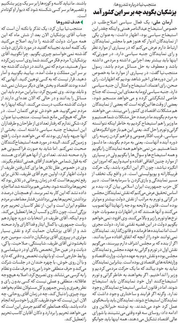روزنامهٔ آرمان ملی: پزشکیان بگوید چه بر سر این کشور آمد