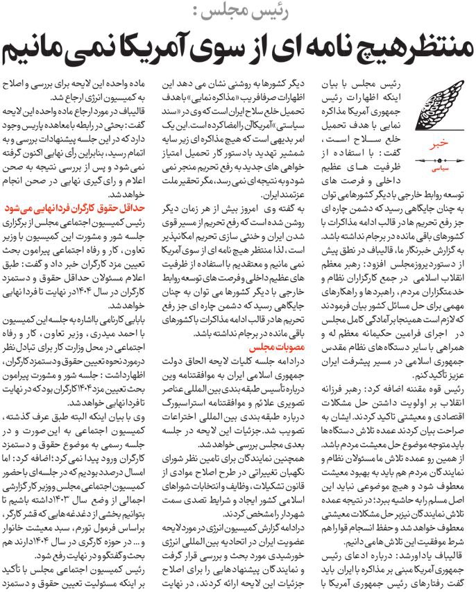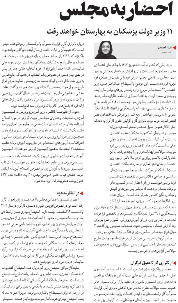 مجلس در مطبوعات – ۲۰ اسفند ۱۴۰۳ – اهم مطالب روزنامههای ایران دربارهی مجلس شورای اسلامی و نمایندگان مجلس.