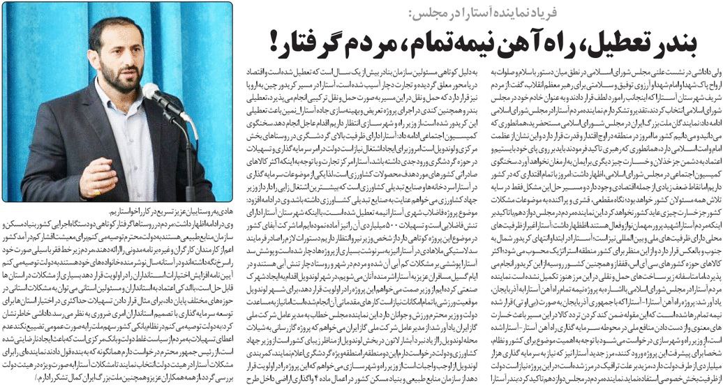 روزنامهٔ اقتصاد آینده: بندر تعطیل، راهآهن نیمه تمام، مردم گرفتار!