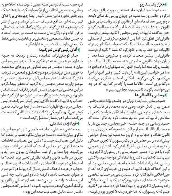 روزنامهٔ آرمان ملی: تندروها، رخ به رخ قالیباف