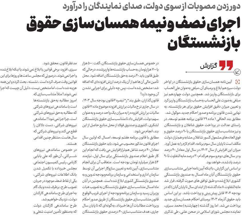 روزنامهٔ چارسوق: اجرای نصف و نیمه همسان‌سازی حقوق بازنشستگان