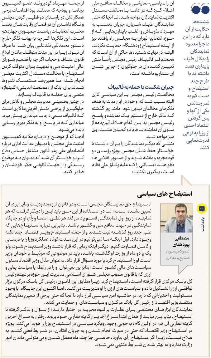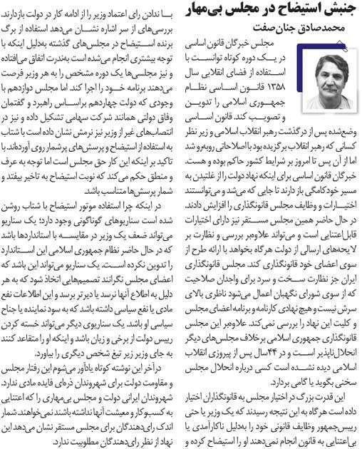 روزنامهٔ جهان صنعت: جنبش استیضاح در مجلس بی‌مهار