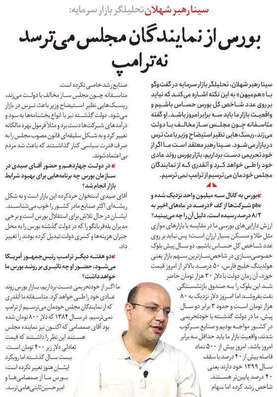 روزنامهٔ هم‌میهن: بورس از نمایندگان مجلس می‌ترسد نه ترامپ