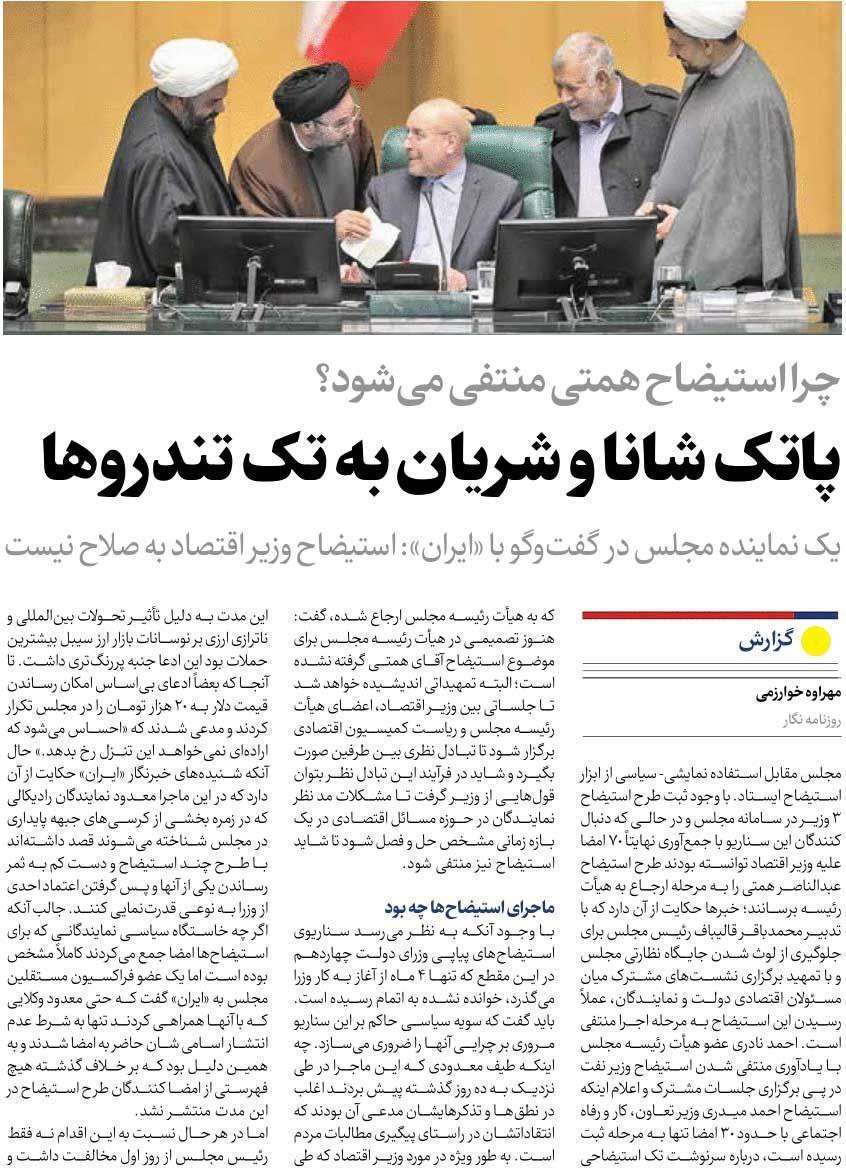 روزنامهٔ ایران: پاتک شانا و شریان به تک تندروها