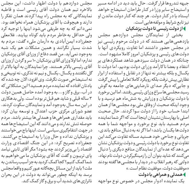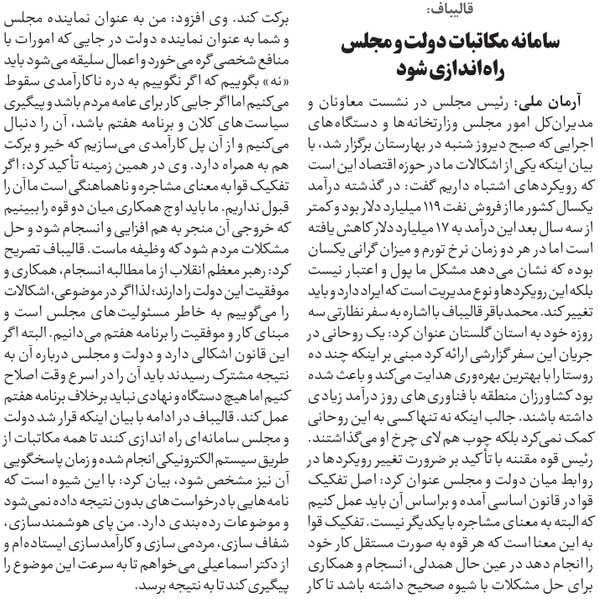 روزنامهٔ آرمان ملی: سامانه مکاتبات دولت و مجلس راهاندازی شود