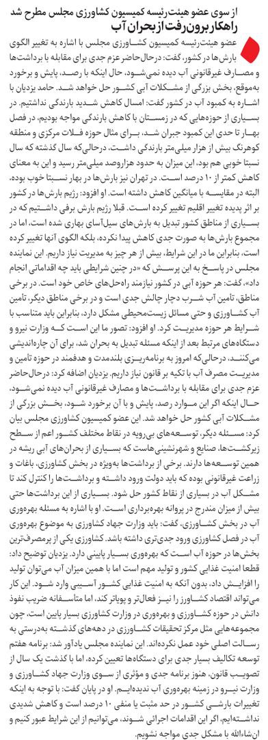 روزنامهٔ شرق: راهکار برون رفت از بحران آب