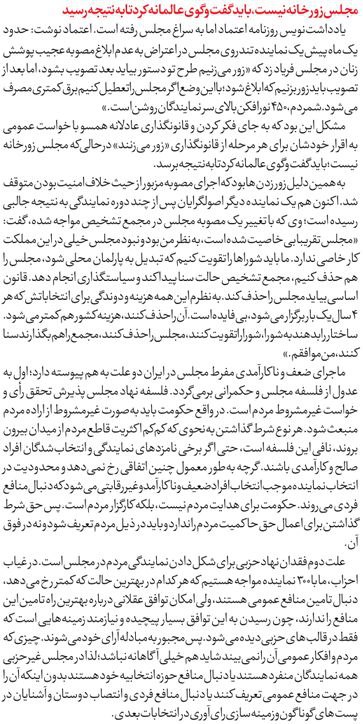 روزنامهٔ شهروند: مجلس زورخانه نیست، باید گفت‌وگوی عالمانه کرد تا به نتیجه رسید