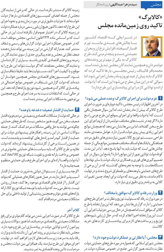 روزنامهٔ همشهری: «کالا برگ» تاکید روی زمین مانده مجلس