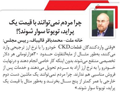 روزنامهٔ جهان صنعت: چرا مردم نمی‌توانند با قیمت یک پراید، تویوتا سوار شوند؟!
