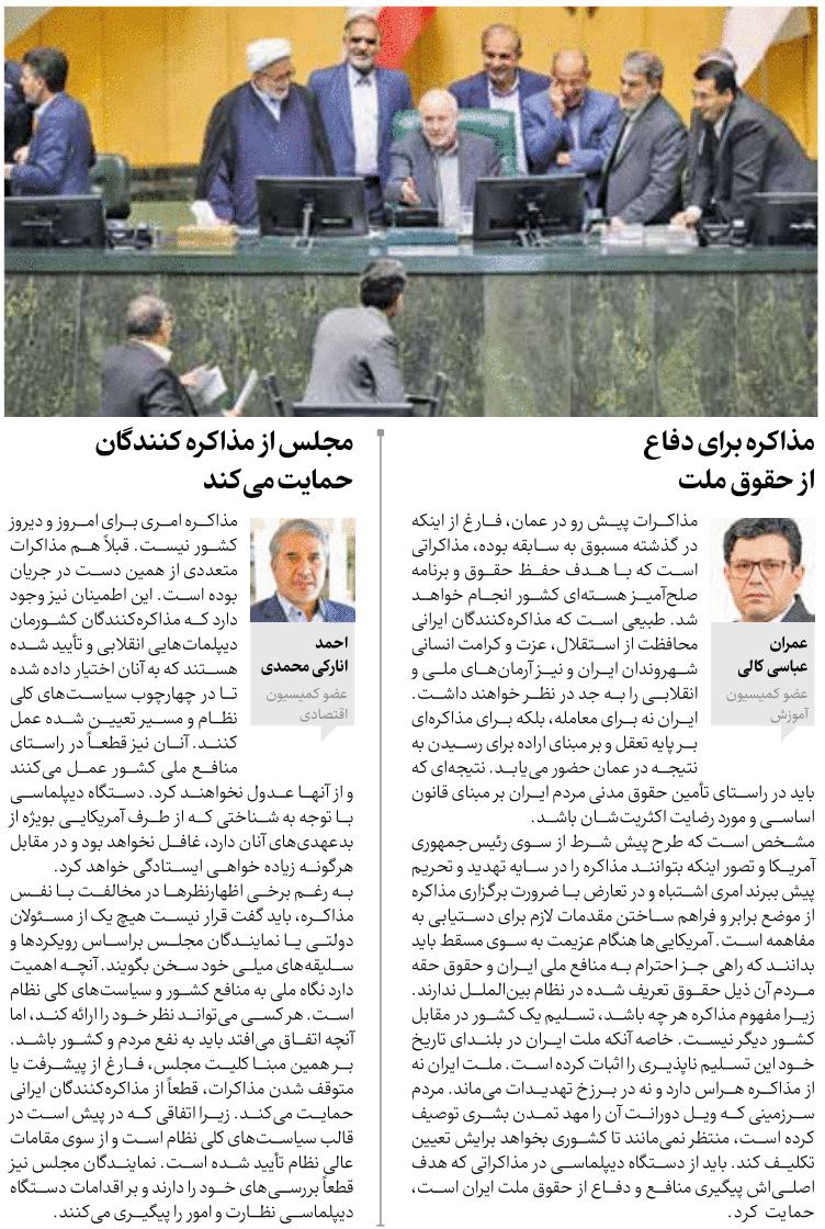 روزنامهٔ آرمان ملی: انتقاد نماینده مشهد از مذاکره کنندگان