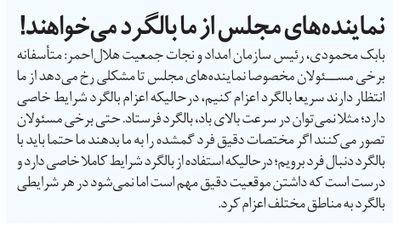 روزنامهٔ هفت صبح: نماینده‌های مجلس از ما بالگرد می‌خواهند!