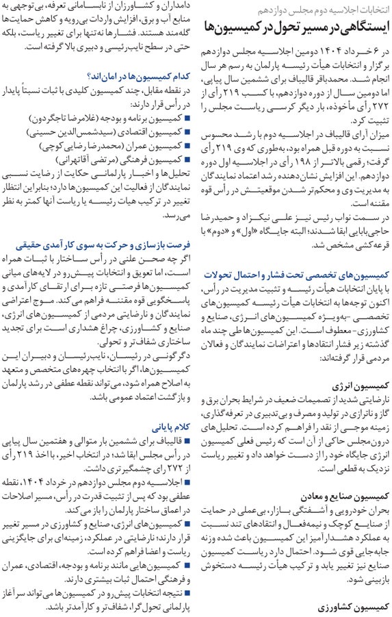 مجلس در مطبوعات – ۲۲ تیر ۱۴۰۴– اهم مطالب روزنامههای ایران دربارهی مجلس شورای اسلامی و نمایندگان مجلس.
