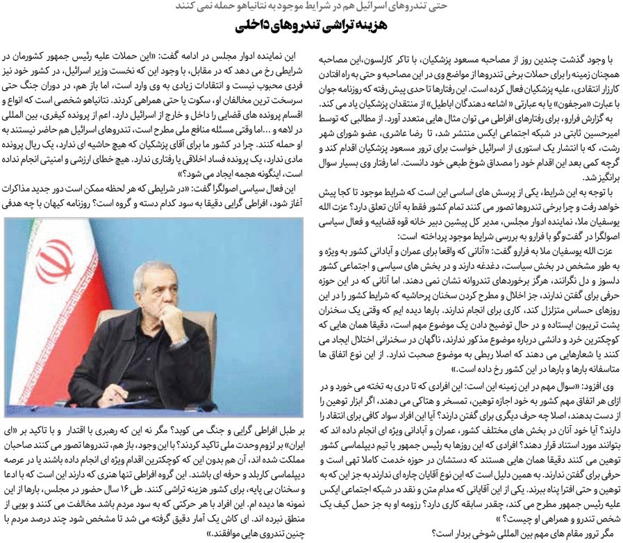 روزنامهٔ ابتکار: هزینه تراشی تندروهای داخلی