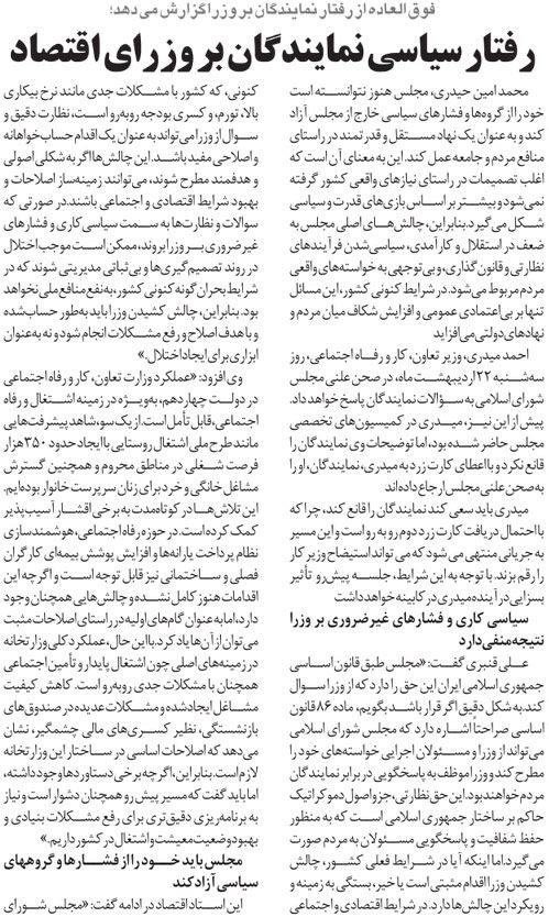 روزنامهٔ فوق العاده: رفتار سیاسی نمایندگان بر وزرای اقتصاد