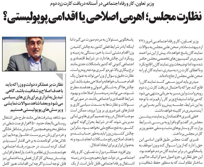 روزنامهٔ توسعهٔ ایرانی: نظارت مجلس، اهرمی اصلاحی یا اقدامی پوپولیستی؟
