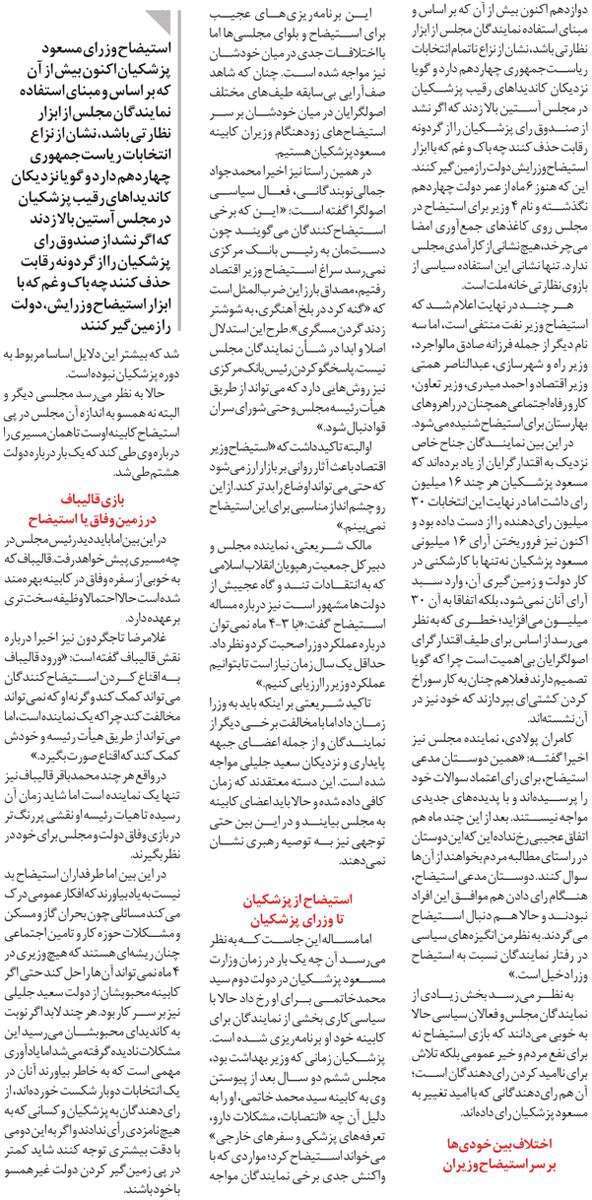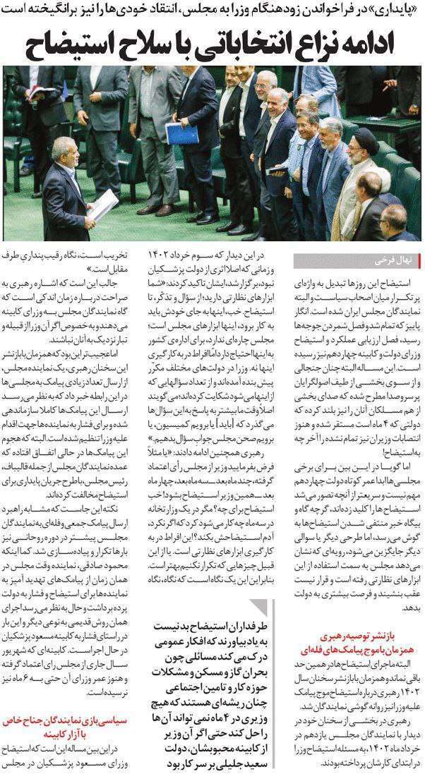 روزنامهٔ توسعه ایرانی: ادامه نزاع انتخاباتی با سلاح استیضاح