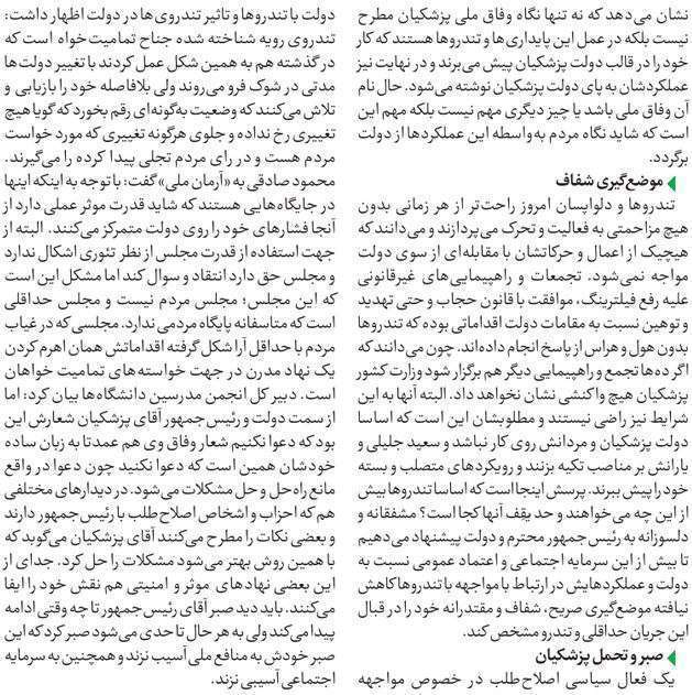 روزنامهٔ آرمان ملی: به نام وفاق ملی، به کام جبهه پایداری