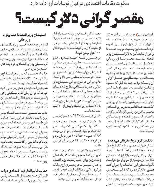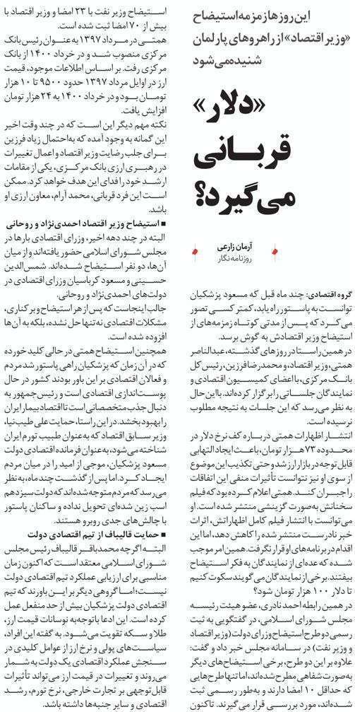 روزنامهٔ نقش اقتصاد: «دلار» قربانی میگیرد؟