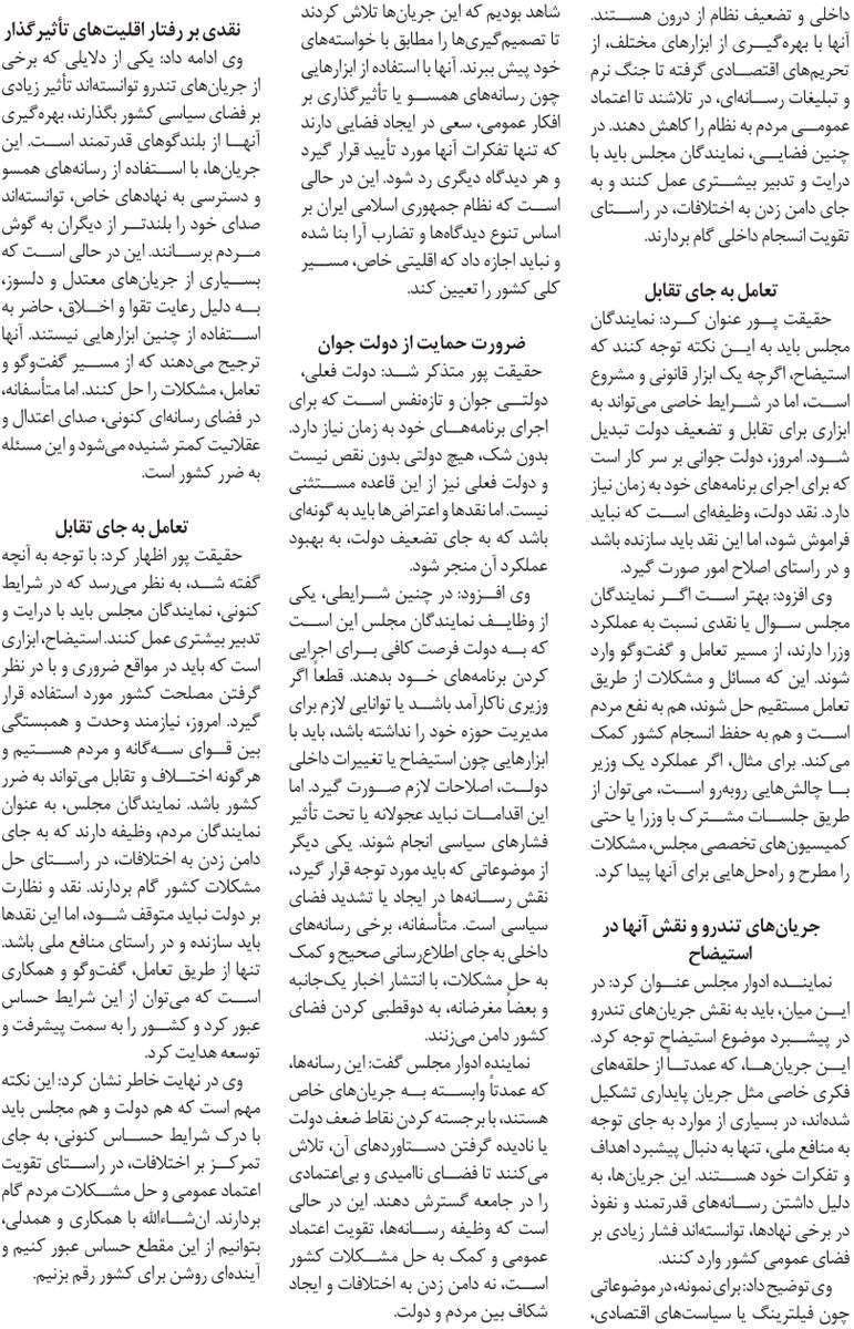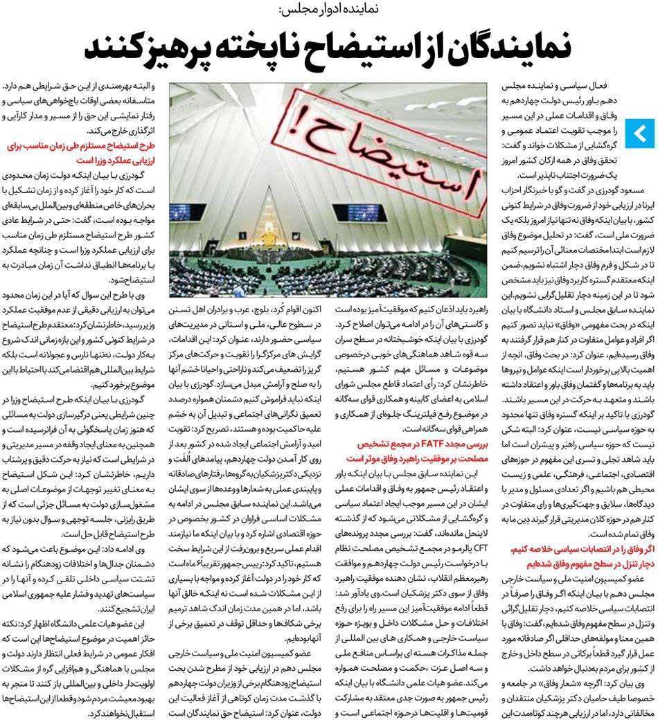 روزنامهٔ رویداد امروز: نمایندگان از استیضاح ناپخته پرهیز کنند