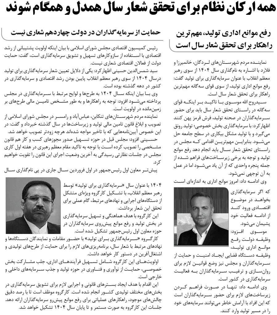 روزنامهٔ گسترش صنعت: همه ارکان نظام برای تحقق شعار سال همدل و همگام شوند