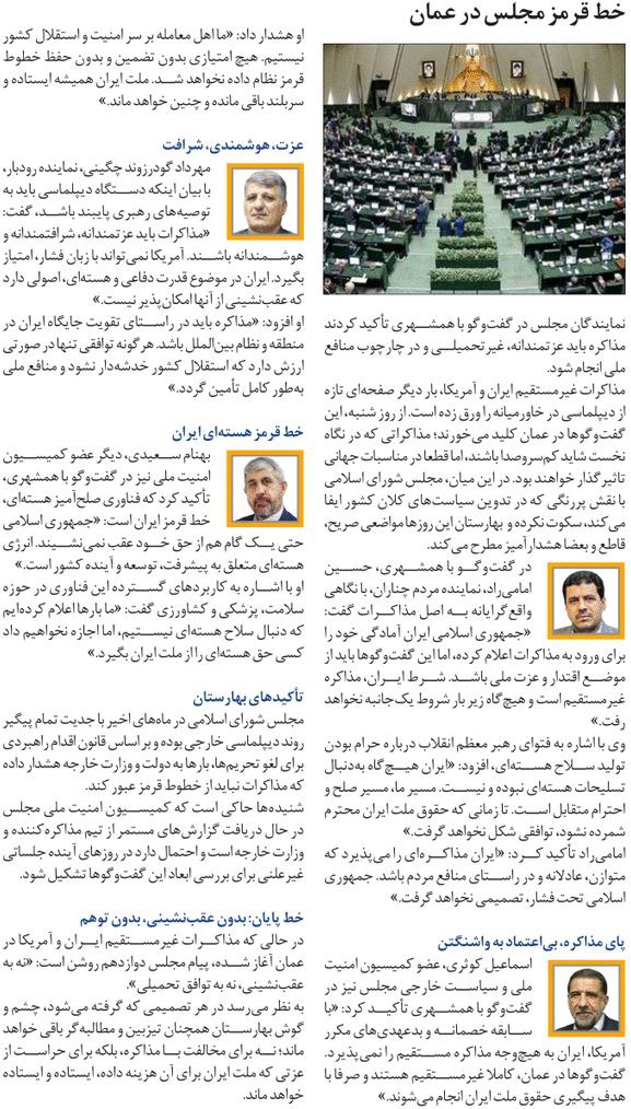 روزنامهٔ همشهری: خط قرمز مجلس در عمان
