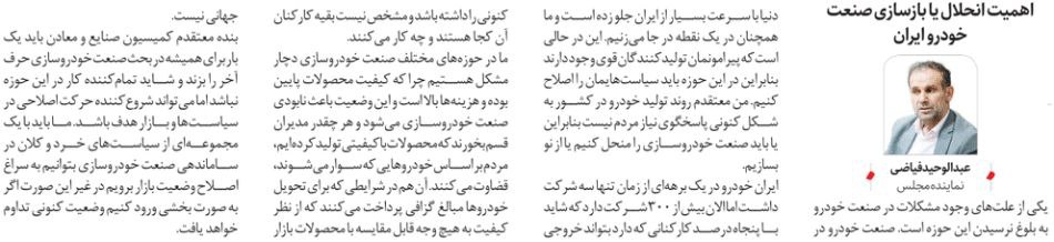 روزنامهٔ نقش اقتصاد: اهمیت انحلال یا بازسازی صنعت خودرو ایران