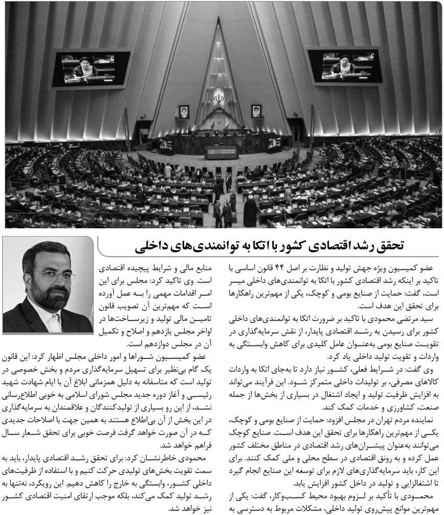 روزنامهٔ گسترش صنعت: همه ارکان نظام برای تحقق شعار سال همدل و همگام شوند