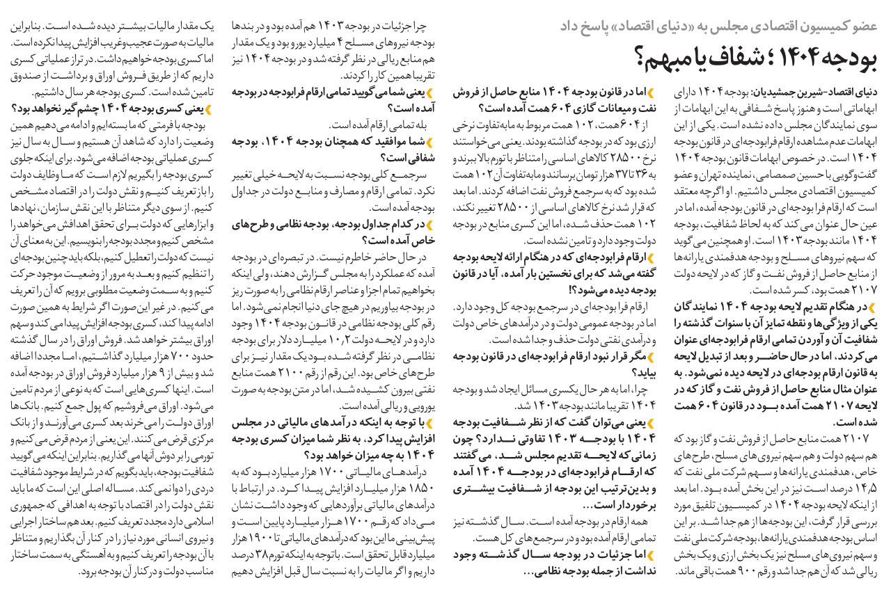 روزنامهٔ دنیای اقتصاد: بودجه ۱۴۰۴، شفاف یا مبهم؟
