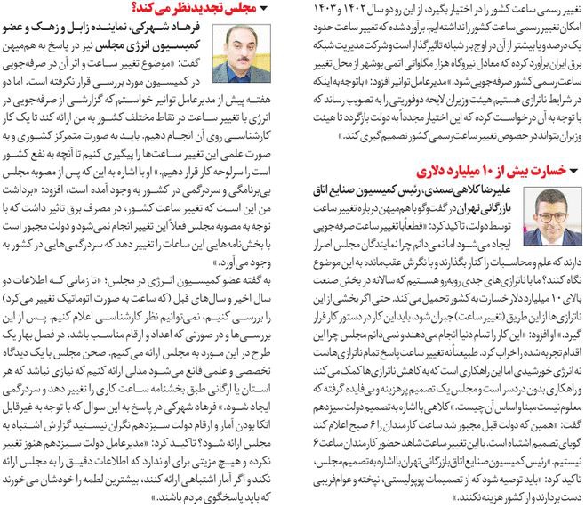 روزنامهٔ هم‌میهن: کاهش ناترازی با تغییر ساعت؟