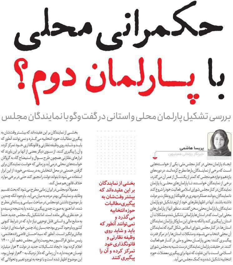 روزنامهٔ هم‌میهن: حکمرانی محلی با پارلمان دوم؟
