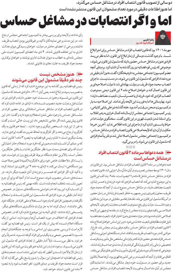 روزنامهٔ فرهیختگان: اما و اگر انتصابات در مشاغل حساس