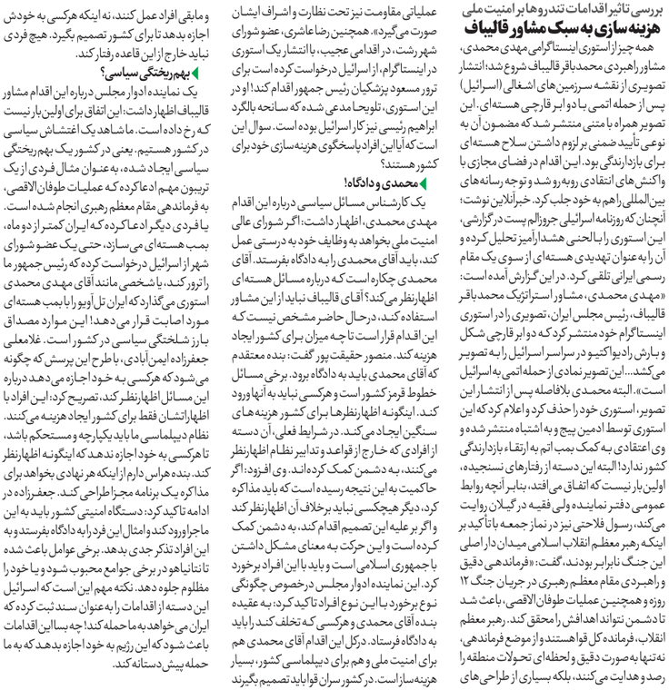 روزنامهٔ آرمان ملی: هزینه‌سازی به سبک مشاور قالیباف