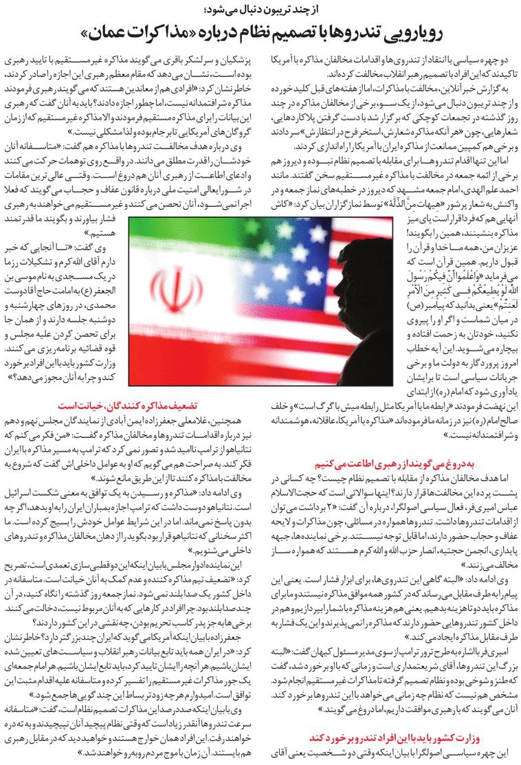 روزنامهٔ توسعه ایرانی: رویارویی تندروها با تصمیم نظام درباره «مذاکرات عمان»