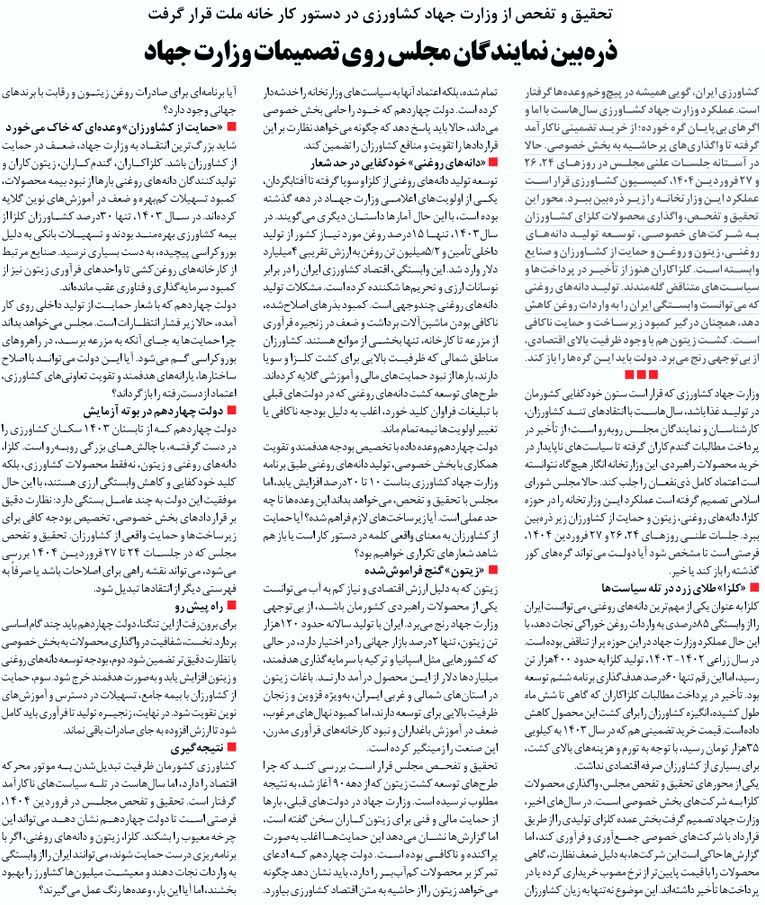 روزنامهٔ جوان: ذره‌بین نمایندگان مجلس روی تصمیمات وزارت جهاد